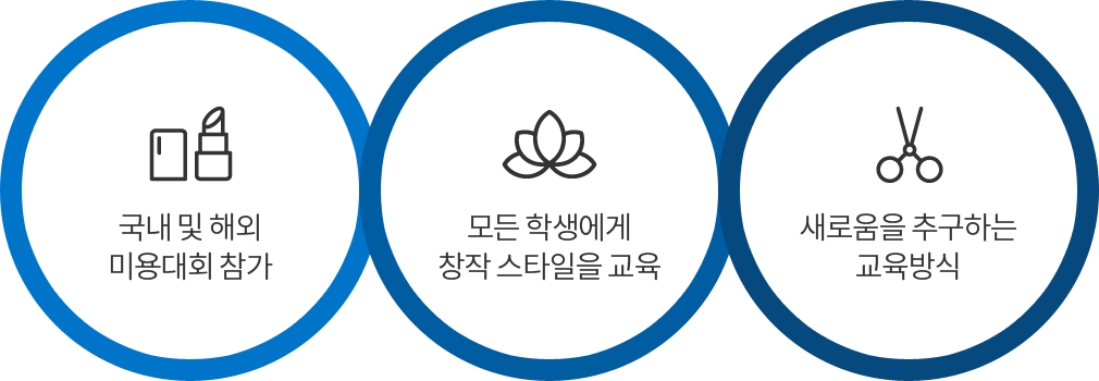 | 진학 | 유학, 4년제 대학교 편입 및 대학원 진학 (미용예술, 미용경영, 향장생물학과 등) |
